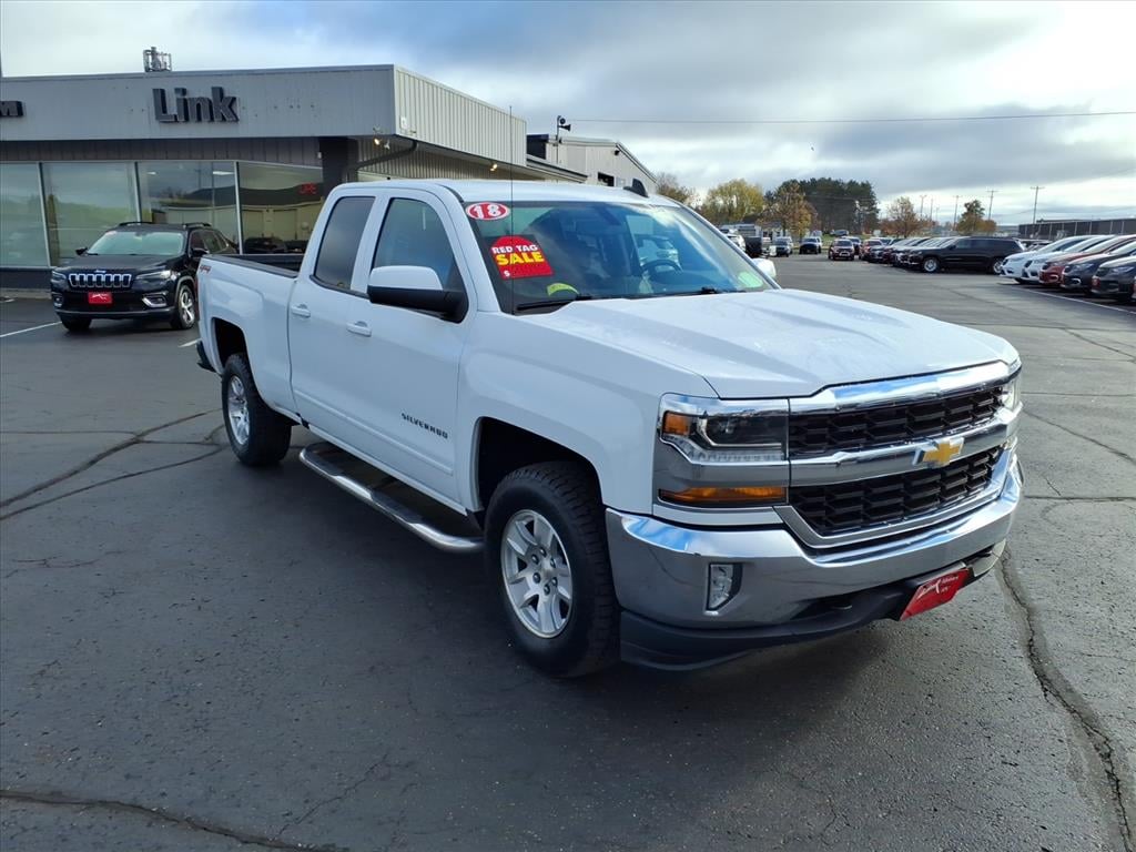 2018 Chevrolet Silverado 1500 LT Double Cab 4WD Summit White ** BACK-UP CAMERA, **ACCIDENT FREE AUTO CHECK REPORT, Silverado 1500 LT Double Cab 4WD, 4D Double Cab, EcoTec3 5.3L V8, 6-Speed Automatic Electronic with Overdrive, 4WD, Summit White, Black Cloth, 10-Way Power Driver's Seat Adjuster, 110-Volt AC Power Outlet, 150 Amp Alternator, 4-Wheel Disc Brakes, 4.2" Diagonal Color Display Driver Info Center, 40/20/40 Front Split Bench Seat, 6 Speaker Audio System, 6 Speakers, ABS brakes, Air Conditioning, All Star Edition, Alloy wheels, AM/FM radio: SiriusXM, Auxiliary External Transmission Oil Cooler, Bluetooth® For Phone, Body Color Bodyside Moldings, Body-Color Door Handles, Body-Color Mirror Caps, Body-Color Power Adjustable Heated Outside Mirrors, Bodyside moldings, Brake assist, CD player, Chevrolet Connected Access, Chevrolet w/4G LTE, Cloth Seat Trim, Color-Keyed Carpeting w/Rubberized Vinyl Floor Mats, Compass, Deep-Tinted Glass, Delay-off headlights, Driver & Front Passenger Illuminated Vanity Mirrors, Driver door bin, Driver vanity mirror, Dual front impact airbags, Dual front side impact airbags, Dual-Zone Automatic Climate Control, Electric Rear-Window Defogger, Electronic Stability Control, Exterior Parking Camera Rear, EZ Lift & Lower Tailgate, Front anti-roll bar, Front Center Armrest w/Storage, Front Chrome Bumper, Front License Plate Kit, Front reading lights, Front wheel independent suspension, Fully automatic headlights, HD Radio, Heated door mirrors, Heated Driver & Front Passenger Seats, Heavy-Duty Rear Locking Differential, High-Intensity Discharge Headlights, Illuminated entry, Integrated Trailer Brake Controller, Leather Wrapped Steering Wheel w/Cruise Controls, Low tire pressure warning, Manual Tilt Wheel Steering Column, Manual Tilt/Telescoping Steering Column, Occupant sensing airbag, OnStar & Chevrolet Connected Services Capable, Outside temperature display, Overhead airbag, Overhead console, Panic alarm, Passenger door bin, Passenger vanity mirror, Power door mirrors, Power steering, Power windows, Power Windows w/Driver Express Up, Premium audio system: Chevrolet MyLink, Radio data system, Radio: AM/FM 8" Diagonal Color Touch Screen, Rear 60/40 Folding Bench Seat (Folds Up), Rear Chrome Bumper, Rear reading lights, Rear step bumper, Rear Wheelhouse Liners, Remote Keyless Entry, Remote keyless entry, Remote Locking Tailgate, Remote Vehicle Starter System, Single Slot CD/MP3 Player, SiriusXM Satellite Radio, Speed control, Speed-sensing steering, Split folding rear seat, Steering Wheel Audio Controls, Steering wheel mounted audio controls, Tachometer, Theft Deterrent System (Unauthorized Entry), Thin Profile LED Fog Lamps, Tilt steering wheel, Traction control, Trailering Package, Trip computer, Variably intermittent wipers, Voltmeter.