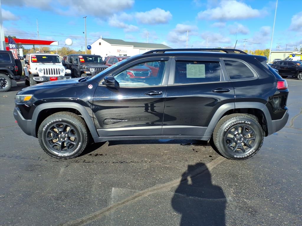 New Price! 2022 Jeep Cherokee Trailhawk 4WD Diamond Black Crystal Pearlcoat ** BACK-UP CAMERA, 4-Wheel Disc Brakes, 4G LTE Wi-Fi Hot Spot, 6 Speakers, 7 & 4 Pin Wiring Harness, 8.4" Touchscreen Display, ABS brakes, Air Conditioning, Alloy wheels, AM/FM radio: SiriusXM, Anti-whiplash front head restraints, Apple CarPlay, Apple CarPlay/Android Auto, Auto-Dimming Rear-View Mirror, Automatic temperature control, Brake assist, Class III Receiver Hitch, Cloth/Premium Vinyl Bucket Seats, Comfort/Convenience Group, Compass, Delay-off headlights, Driver door bin, Driver vanity mirror, Dual front impact airbags, Dual front side impact airbags, Electronic Stability Control, For Details, Visit DriveUconnect.com, For More Info, Call 800-643-2112, Four wheel independent suspension, Front anti-roll bar, Front Bucket Seats, Front Center Armrest, Front dual zone A/C, Front fog lights, Front License Plate Bracket, Front reading lights, Fully automatic headlights, Google Android Auto, GPS Antenna Input, Hands-Free Power Liftgate, Heated door mirrors, Heated front seats, Heated steering wheel, Illuminated entry, K-Black Door Trim Panel Appliques, K-Black Interior Accents, Knee airbag, Leather Shift Knob, Low tire pressure warning, Occupant sensing airbag, Off Road Suspension, Outside temperature display, Overhead airbag, Overhead console, Panic alarm, ParkView Rear Back-Up Camera, Passenger door bin, Passenger vanity mirror, Power door mirrors, Power driver seat, Power steering, Power windows, Quick Order Package 27E, Radio data system, Radio: Uconnect 4 w/8.4" Display, Rain sensing wipers, Rear anti-roll bar, Rear reading lights, Rear seat center armrest, Rear side impact airbag, Rear window defroster, Rear window wiper, Remote keyless entry, Roof rack: rails only, Security Alarm, SiriusXM Radio Service, SiriusXM Satellite Radio, Speed control, Speed-sensing steering, Split folding rear seat, Spoiler, Steering wheel mounted audio controls, Tachometer, Telescoping steering wheel, Tilt steering wheel, Traction control, Trailer Tow Group, Trailer Tow Wiring Harness, Trip computer, Turn signal indicator mirrors, Universal Garage Door Opener, USB Host Flip, Variably intermittent wipers, Voltmeter, Wheels: 17" x 7.5" Black Painted Aluminum, Wheels: 17" x 7.5" Painted Diamond Cut Aluminum.
