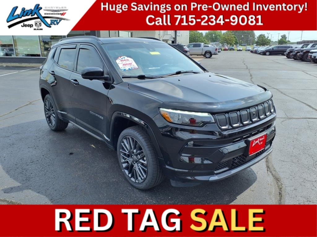 2022 Jeep Compass High Altitude 4WD Diamond Black Crystal Pearlcoat ** BACK-UP CAMERA, ** BOUGHT AND SERVICED AT LINK FORD, **BLUETOOTH, Compass High Altitude 4WD, 4D Sport Utility, 2.4L I4, 9-Speed 948TE Automatic, 4WD, Diamond Black Crystal Pearlcoat, Black Leather, 10.1" Touchscreen Display, 115V Auxiliary Power Outlet, 2nd Row Heated Seats, 2nd Row USB Type A/C Charge Only, 360 Surround View Camera System, 4-Wheel Disc Brakes, 4G LTE Wi-Fi Hot Spot, 6 Speakers, ABS brakes, Air Conditioning, Alexa Built-In, Alloy wheels, AM/FM radio: SiriusXM, Anti-whiplash front head restraints, Auto High Beam Headlamp Control, Auto High-beam Headlights, Auto-dimming Rear-View mirror, Automatic temperature control, Black Headliner, Body Color Door Claddings, Body Color Exterior Sill Moldings, Body Color Fascias, Body Color Wheel Flares, Brake assist, Bumpers: body-color, Cluster 10.25" TFT Color Display, Compass, Connected Travel & Traffic Services, Delay-off headlights, Disassociated Touchscreen Display, Driver Assist Group I, Driver door bin, Driver Seat Memory, Driver vanity mirror, Dual front impact airbags, Dual front side impact airbags, Electronic Stability Control, Elite Interior Group High Altitude, Emergency communication system: SiriusXM Guardian, Foot Activated Open 'N Go Liftgate, For Details, Visit DriveUconnect.com, For More Info, Call 800-643-2112, Four wheel independent suspension, Front anti-roll bar, Front Bucket Seats, Front Center Armrest w/Storage, Front dual zone A/C, Front fog lights, Front License Plate Bracket, Front reading lights, Fully automatic headlights, Global Telematics Box Module (TBM), Gloss Black Exterior Mirrors, Gloss Black Surround/Neutral Gray Rings, GPS Navigation, Gray Day Light Opening Moldings, HD Radio, Heated door mirrors, Heated front seats, Heated steering wheel, High Altitude Package, Highway Assist System, Illuminated entry, Integrated Voice Command w/Bluetooth, Knee airbag, Leather Shift Knob, Leather Trimmed Bucket Seats, LED Low/Highbeam Projector Headlamps, Liquid Chrome/Chainmail Hydro Accent, Low tire pressure warning, Neutral Gray Exterior Accents, Neutral Gray Exterior Badging, Neutral Gray Side Roof Rails, Occupant sensing airbag, Outside temperature display, Overhead airbag, Overhead console, P&P Park & Unpark Assist System, Panic alarm, ParkSense Fr/Rr Park Assist System, ParkView Rear Back-Up Camera, Passenger door bin, Passenger vanity mirror, Power 8-Way Adjust Front Passenger Seat, Power door mirrors, Power driver seat, Power Front/Fixed Rear Full Sunroof, Power Liftgate, Power steering, Power windows, Premium Alpine Speaker System, Premium Leather Trimmed Bucket Seats, Premium LED Fog Lamps, Premium Taillamps, Quick Order Package 2GF High Altitude, Radio: Uconnect 5 Nav w/10.1" Display, Radio: Uconnect 5 w/10.1" Display, Rain sensing wipers, Rear anti-roll bar, Rear seat center armrest, Rear window defroster, Rear window wiper, Remote keyless entry, Reversible Carpet/Vinyl Cargo Mat, Roof rack: rails only, Security system, SiriusXM Guardian - Included Trial (B), Speed control, Split folding rear seat, Spoiler, Steering wheel mounted audio controls, Tachometer, Telescoping steering wheel, Tilt steering wheel, Traction control, Traffic Sign Recognition, Trip computer, Tungsten Accent Stitching, Turn signal indicator mirrors, Universal Garage Door Opener, Variably intermittent wipers, Ventilated Front Seats, Wheels: 19" x 7.5" Aluminum Painted, Wireless Charging Pad. 22/30 City/Highway MPG Odometer is 2203 miles below market average!