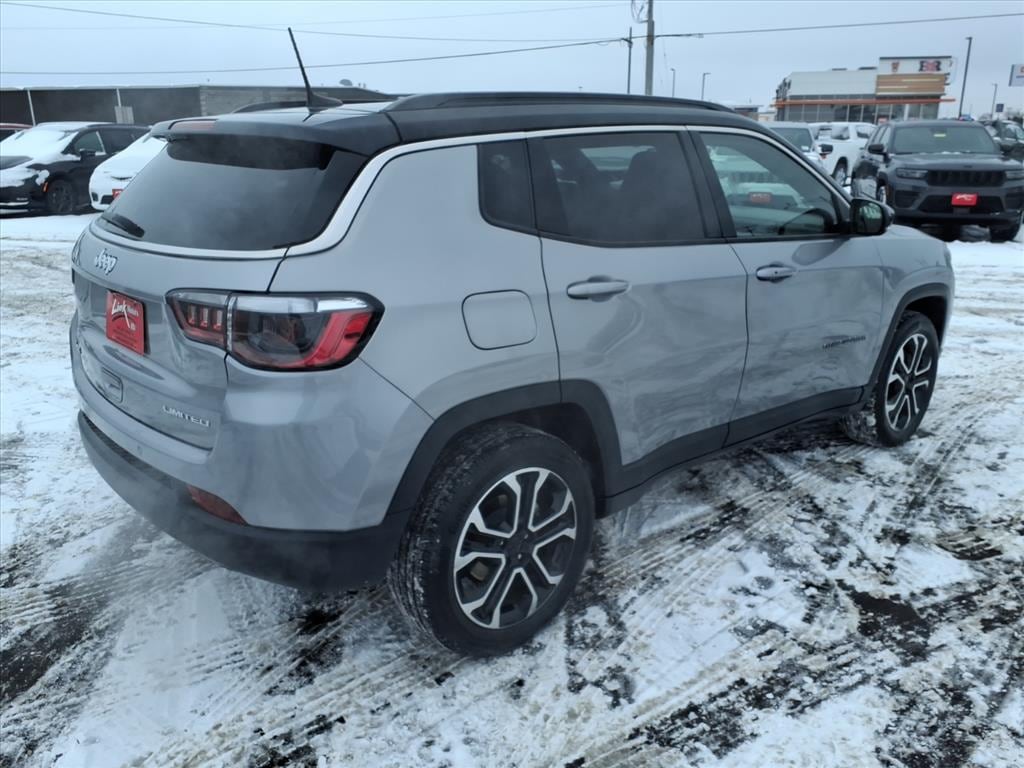 2023 Jeep Compass Limited 4WD Billet Silver Metallic Clearcoat **NEW TIRES, ** BACK-UP CAMERA, **LEATHER INTERIOR, **ACCIDENT FREE AUTO CHECK REPORT, **BLUETOOTH, **REMOTE START**, **HEATED SEATS**, Compass Limited 4WD, 4D Sport Utility, 2.0L I4 DOHC, 8-Speed Automatic, 4WD, Billet Silver Metallic Clearcoat, Black Leather, 10.1" Touchscreen Display, 4-Wheel Disc Brakes, 6 Speakers, ABS brakes, Air Conditioning, Alloy wheels, AM/FM radio: SiriusXM, Auto High-beam Headlights, Auto-dimming Rear-View mirror, Automatic temperature control, Brake assist, Bumpers: body-color, Compass, Delay-off headlights, Disassociated Touchscreen Display, Driver door bin, Driver vanity mirror, Dual front impact airbags, Dual front side impact airbags, Electronic Stability Control, Four wheel independent suspension, Front anti-roll bar, Front Bucket Seats, Front Center Armrest w/Storage, Front dual zone A/C, Front fog lights, Front License Plate Bracket, Front reading lights, Fully automatic headlights, Heated door mirrors, Heated front seats, Heated steering wheel, Hidden Exhaust Tips-Dual, Illuminated entry, Knee airbag, Leather Shift Knob, Leatherette Seats, Low tire pressure warning, Occupant sensing airbag, Outside temperature display, Overhead airbag, Overhead console, Panic alarm, ParkView Rear Back-Up Camera, Passenger door bin, Passenger vanity mirror, Power door mirrors, Power driver seat, Power steering, Power windows, Quick Order Package 29G, Radio: Uconnect 5 w/10.1" Display, Rain sensing wipers, Rear anti-roll bar, Rear seat center armrest, Rear window defroster, Rear window wiper, Remote keyless entry, Security system, Speed control, Split folding rear seat, Spoiler, Steering wheel mounted audio controls, Tachometer, Telescoping steering wheel, Tilt steering wheel, Traction control, Trip computer, Turn signal indicator mirrors, Variably intermittent wipers. 24/32 City/Highway MPG