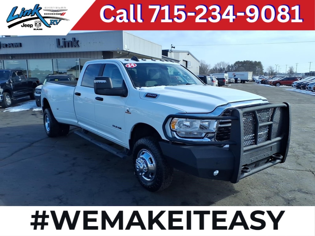 2024 Ram 3500 Big Horn DRW Crew Cab 4WD Bright White Clearcoat ** BACK-UP CAMERA, **ACCIDENT FREE AUTO CHECK REPORT, **BLUETOOTH, **HEATED SEATS**, **HEATED STEERING WHEEL**, 3500 Big Horn DRW Crew Cab 4WD, 4D Crew Cab, Cummins 6.7L I6 Turbodiesel, 6-Speed Automatic, 4WD, Bright White Clearcoat, Diesel Gray/Black Cloth, 115V Auxiliary Front Power Outlet, 220 Amp Alternator, 2nd Row In Floor Storage Bins, 4-Wheel Disc Brakes, 400W Inverter, 4G LTE Wi-Fi Hot Spot, 50 Gallon Fuel Tank, 5th Wheel/Gooseneck Towing Prep Group, 6 Speakers, 6000# Front Axle w/Hub Ext, 8.4" Touchscreen Display, 9 Alpine Speakers w/Subwoofer, ABS brakes, Active Noise Control System, Air Conditioning, All R1 Low Radios, All Radio Equipped Vehicles, Apple CarPlay, Auto Power-Folding Mirrors, Bed Utility Group, Black Exterior Mirrors, Blind Spot & Cross Path Detection, Bluetooth Handsfree Phone & Audio, Box & Rear Fender Clearance Lamps, Brake assist, Bumpers: chrome, Center Hub, Clearance Lamps, Compass, Connectivity - US/Canada, CTR Stop Lamp w/Cargo View Camera, Dash Pass Thru Wire Circuits, Delay-off headlights, Driver door bin, Dual front impact airbags, Dual front side impact airbags, Dual Glove Boxes, Dual Rear Wheels, Electronic Stability Control, Electronically Controlled Throttle, Emergency communication system: SiriusXM Guardian, Exterior 115V AC Outlet, Exterior Mirrors Courtesy Lamps, Exterior Mirrors w/Heating Element, Exterior Mirrors w/Supplemental Signals, Foam Bottle Insert (Door Trim Panel), Footwell Courtesy Lamp, For Details Visit DriveUconnect.com, For More Info, Call 800-643-2112, Forward & Reverse Utility Lights, Front anti-roll bar, Front Center Armrest w/Storage, Front Center Seat Cushion Storage, Front Fog Lamps, Front License Plate Bracket, Front reading lights, Front Seat Back Map Pockets, Fully automatic headlights, Global Telematics Box Module (TBM), Glove Box Lamp, Google Android Auto, GPS Antenna Input, Heated door mirrors, Heated Seats & Wheel Group, Heated Steering Wheel, I/P Mounted Auxiliary Switches, Illuminated entry, Integrated Center Stack Radio, Integrated Voice Command w/Bluetooth, Leather Wrapped Steering Wheel, LED Bed Lighting, LED Tail Lamps, Level 1 Equipment Group, Locking Lower Glove Box, Low tire pressure warning, Mirror Running Lights, MOPAR Deployable Bed Step, MOPAR Spray In Bedliner, Occupant sensing airbag, Outside temperature display, Overhead airbag, Overhead console, Panic alarm, ParkView Rear Back-Up Camera, Passenger door bin, Passenger vanity mirror, Power Adjust 8-Way Driver Seat, Power Adjust Mirrors, Power door mirrors, Power Heated Fold Telescopic Mirrors, Power steering, Power Telescoping Mirrors, Power windows, Power-Adjustable Convex Aux Mirrors, Premium Cloth 40/20/40 Bench Seat, Protection Group, Quick Order Package 2HZ Big Horn, Radio data system, Radio: Uconnect 3 w/5" Display, Radio: Uconnect 5 w/8.4" Display, Radio: Uconnect 5 w/8.4" Display (DISC), Rear 60/40 Folding Seat, Rear Dome w/On/Off Switch Lamp, Rear seat center armrest, Rear step bumper, Rear Wheelhouse Liners, Remote keyless entry, Remote Start System, Remote USB Port - Charge Only, Selectable Tire Fill Alert, Speed control, Steering Wheel Mounted Audio Controls, Storage Tray, Tachometer, Tilt steering wheel, Tip Start, Traction control, Trip computer, Turn signal indicator mirrors, Variably intermittent wipers, Voltmeter, Wheels: 18" x 8.0" Polished Aluminum.